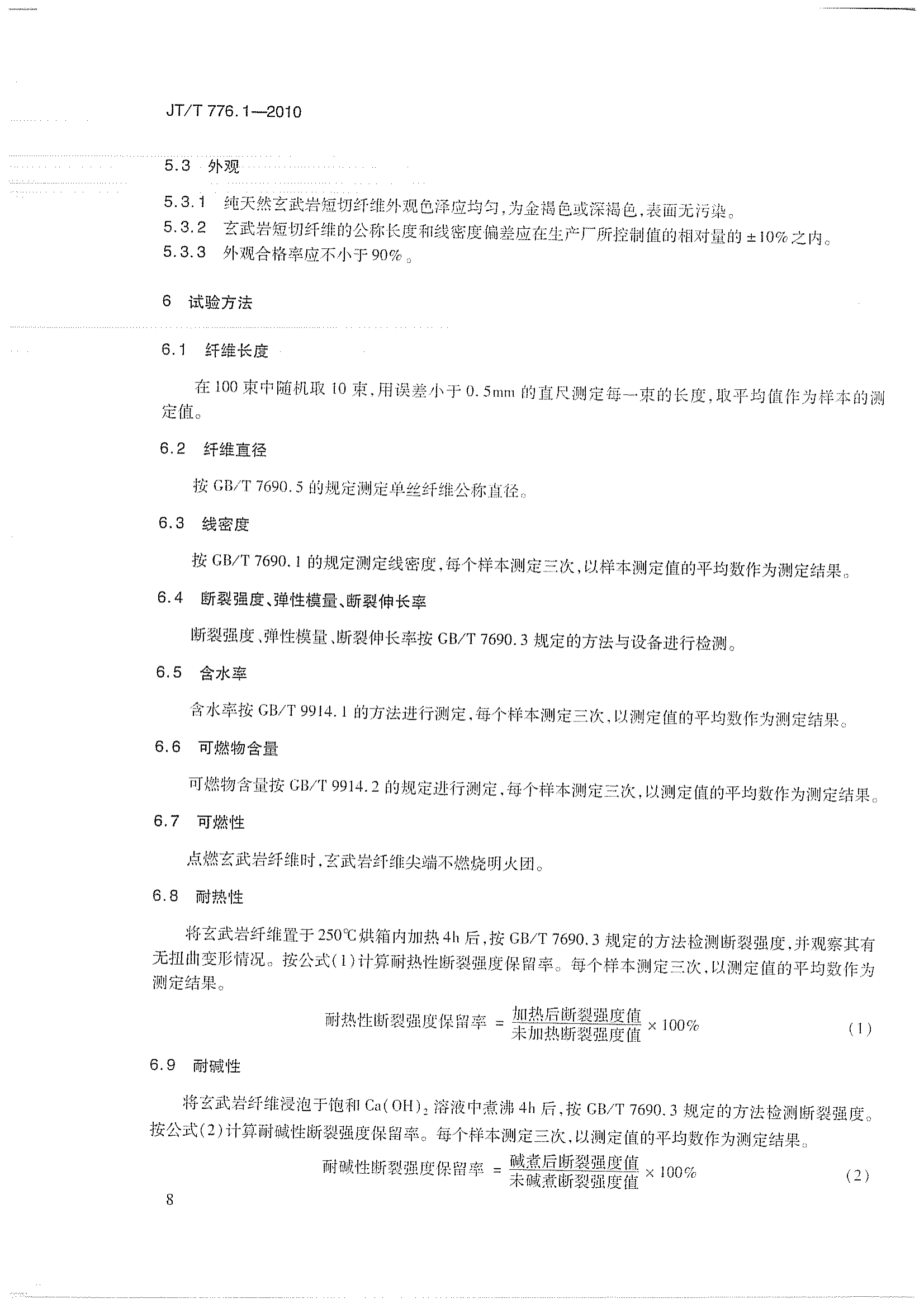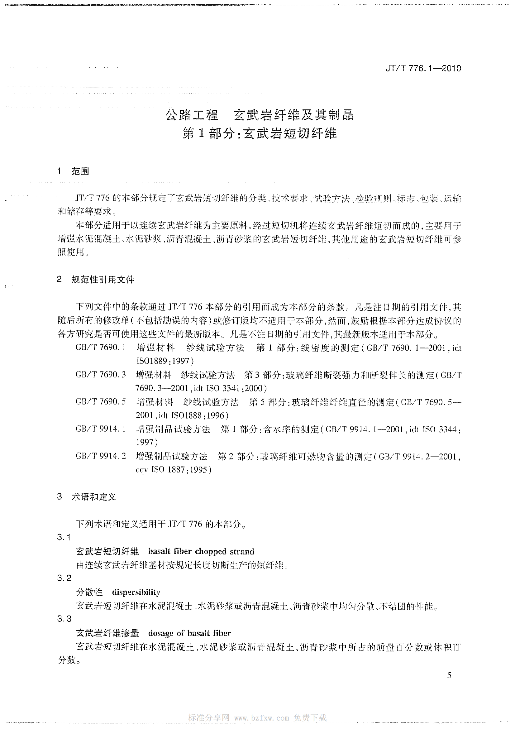 JTT-776-1-2010-玄武岩纤维及其制品-第1部分-玄武岩短切纤维