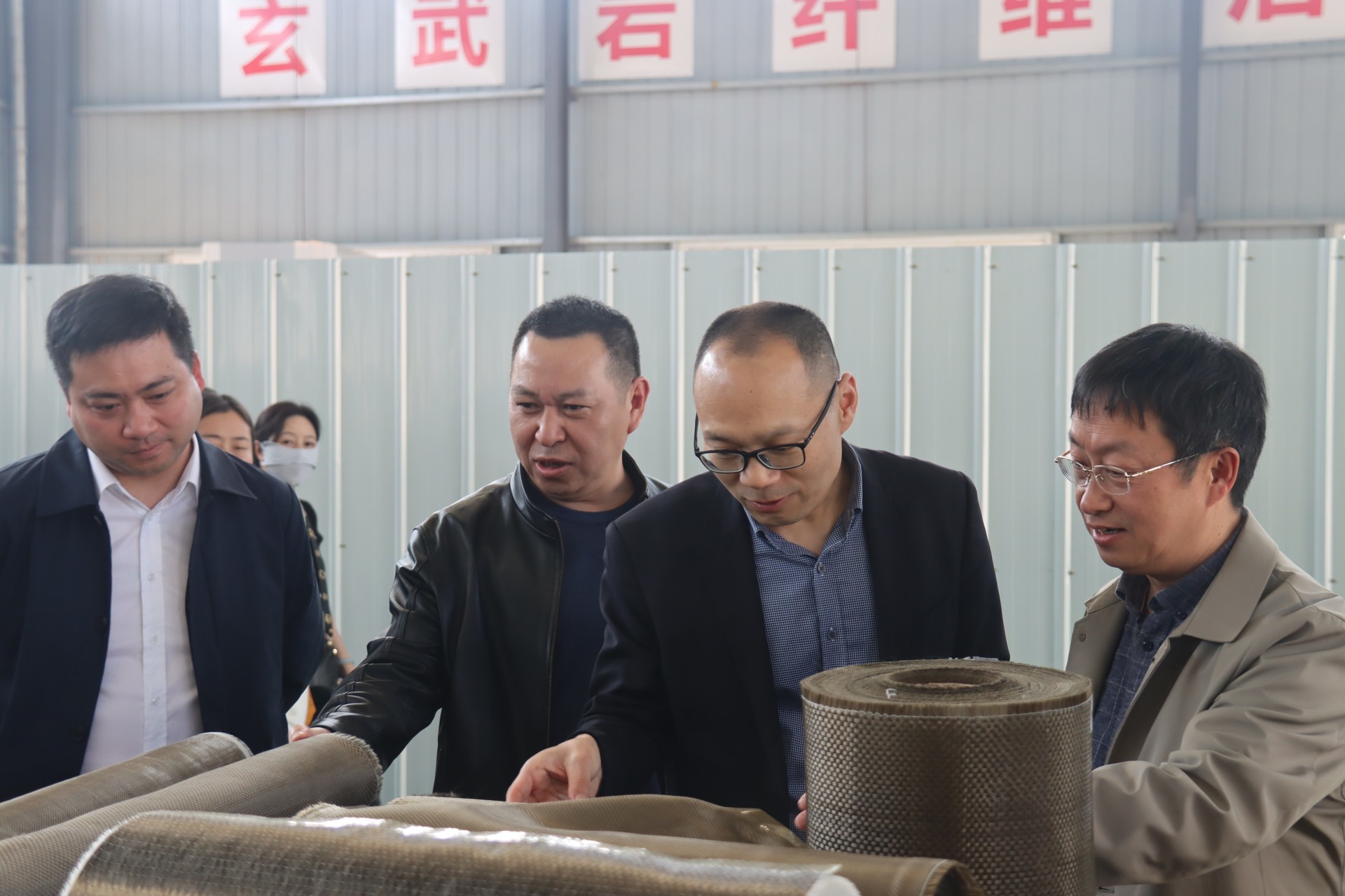 肖启义一行先后来到原丝车间、络纱车间、纺织车间等生产线,详细了解玄武岩纤维及其制品的生产工艺、应用领域及市场销售情况,并就企业的生产经营情况、财务状况及融资需求等方面进行了深入交流。